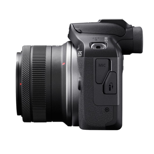 Aparat Foto Mirrorless Canon EOS R100 24.1MP + Obiectiv Kit RF-S 18-45mm IS STM F4.5-6.3, 4K, WiFi, Bluetooth, Micro HDMI, USB-C, Negru