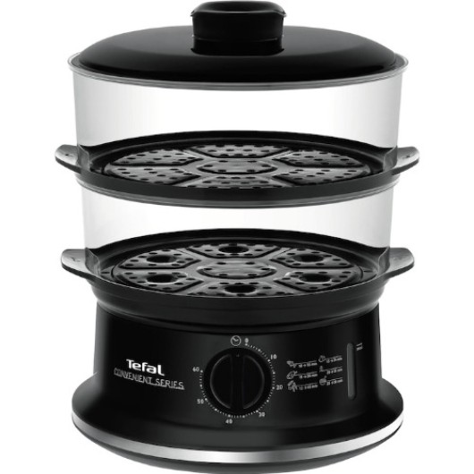 Aparat de gatit cu aburi Tefal VC1401, 900W, Timer, oprire automata, depozitare compacta, grile detasabile, Negru