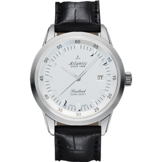 Ceas Barbatesc Atlantic Seacloud 73360, 43 mm, Cristal Safir, Otel Inoxidabil, WR 100M, Quartz, Curea din Piele Neagra, Silver