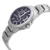 Ceasul impresionează prin designul său sofisticat. Carcasa și brățara sunt realizate din oțel inoxidabil de înaltă calitate, cu o finisare argintie elegantă, oferind atât durabilitate, cât și un aspect modern. Închizătoarea pliabilă cu buton de apăsare asigură un confort maxim și o fixare sigură. Cadranul albastru captivant, protejat de un geam din cristal de safir, adaugă o notă de rafinament care completează look-ul luxos.