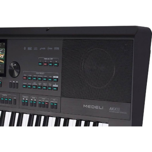 Echipată cu 61 de clape ușoare și un ecran de 7 inci cu tehnologie Capacitive TouchView™ TFT Color, Medeli AKX10 oferă nu doar o interfață intuitivă, ci și una extrem de funcțională. Funcționalitățile sale includ posibilități de editare a samplerilor și ritmurilor, alături de conectivitate extinsă prin USB și MIDI, ceea ce permite conectarea ușoară la alte echipamente și software-uri muzicale.