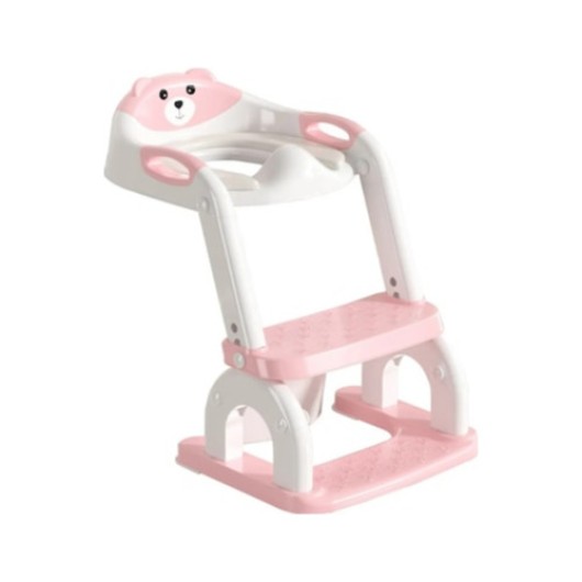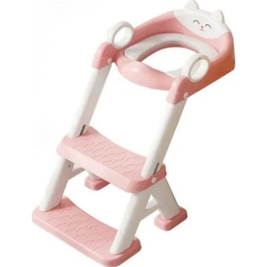 Reductor toaleta pentru copii Little Mom Kitty Pink, cu doua scari, colac moale detasabil, pliabil, design anti-stropire, baza antiderapanta, inaltime reglabila, spatar si manere, compatibilitate universala