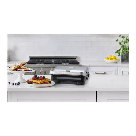 Designul elegant, cu un finisaj argintiu-negru, se va integra armonios în orice decor de bucătărie modernă. Sistemul de blocare, indicatorul luminos și funcția de plăci antiaderente adaugă un plus de siguranță și confort utilizării zilnice. Cu o dimensiune compactă de 19 x 31,5 x 30 cm și o greutate de doar 3,21 kg, aparatul este ușor de manevrat și depozitat.